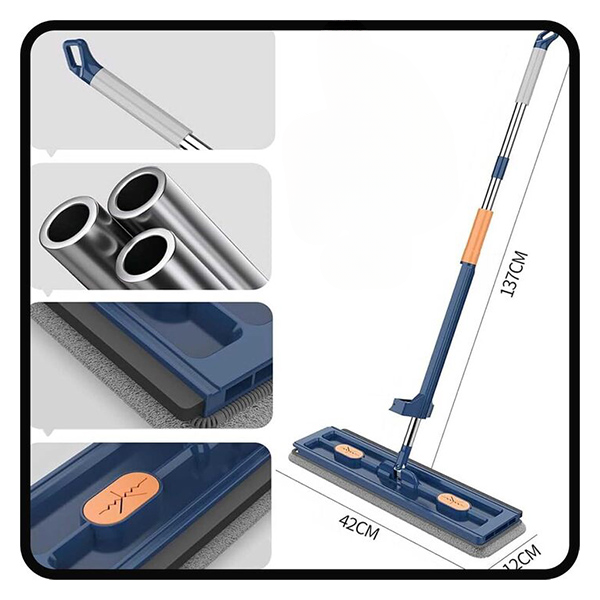 С 2 миещи се подложки от памучни влакна този моп абсорбира няколко пъти теглото си във вода, като осигурява отлично отстраняване на мръсотията и праха. Използвайте го, за да почиствате с лекота плочките и стените в банята. Той може лесно да премахне всички сапунени петна, а меката гумена лента издърпва излишната вода.