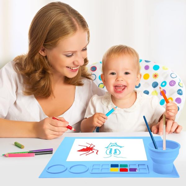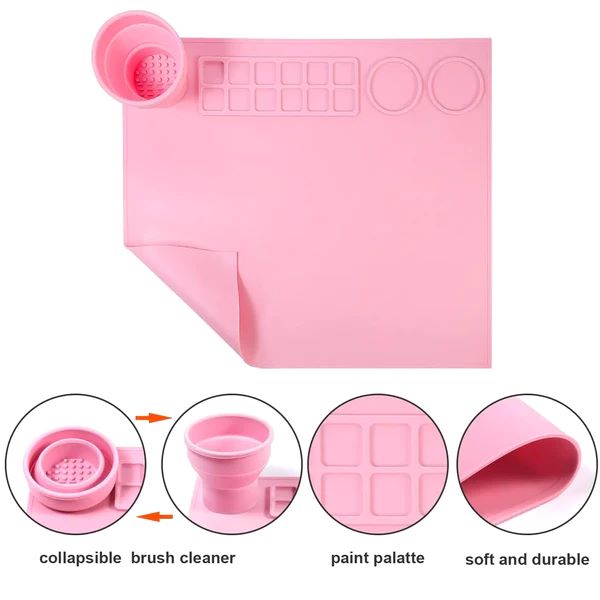 Нашата първа в историята подложка е с вградена сгъваема чашка за почистване на четки. Чашата за почистване на четки е предназначена за задържане на вода и почистване на четки за боядисване.