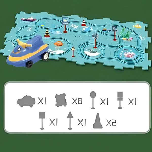 Комплектът включва множество части за писти, които позволяват на децата лесно да създават различни макети, като повишават тяхната креативност и умения за решаване на проблеми.