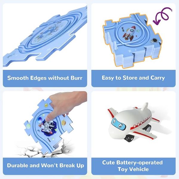 Сглобяването на пистите помага за развитието на координацията ръка-око и учи децата на основни концепции за пространствено и логическо мислене.