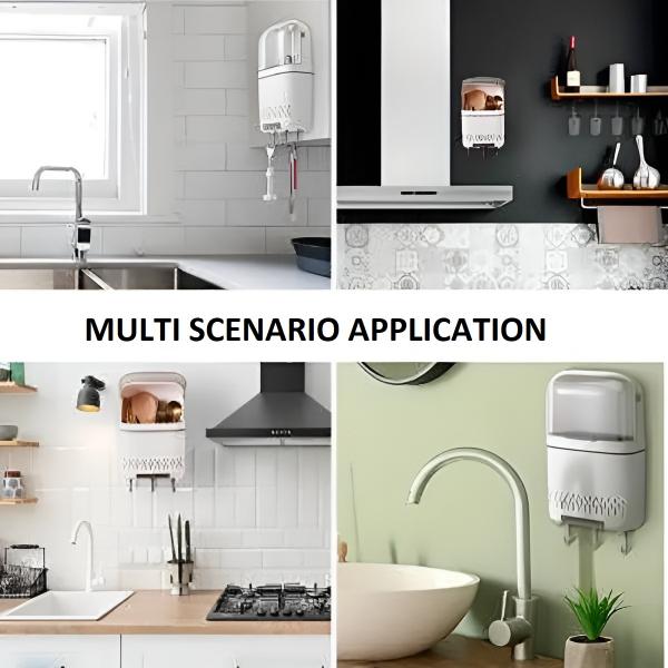 🌿 Идеален за съхранение на малки кухненски инструменти като белачки, отварачки за бутилки и преси за чесън.