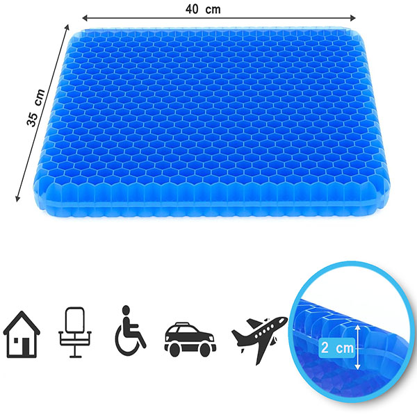 Край на болките в гърба и дискомфорта. Тази възглавница е насочена към области като бедрата, опашната кост и долната част на гърба, като облекчава натиска от лоша стойка или мускулно напрежение. Нейната гел технология Ви гарантира, че ще се наслаждавате на безболезнено седене през целия ден.