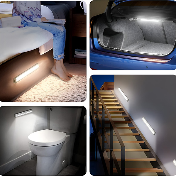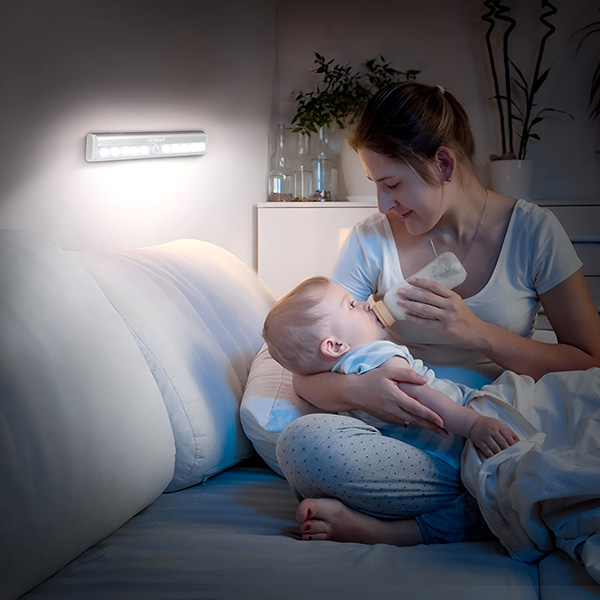 Залепете я до вратата на банята или вътре в нея. Активира се, когато се приближите, осигурявайки достатъчно светлина за нощни посещения, без силната яркост на горните лампи.