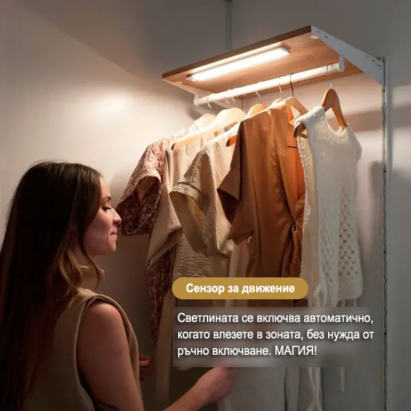 Направете обличането си по-лесно, като поставите тази лампичка в гардероба или шкафа си. Тя автоматично светва, когато отворите вратата, и ви помага да намерите дрехите си, без да се лутате в тъмното.