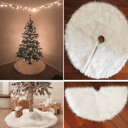 Изработен от мека и уютна екокожа, килимът за коледна елха е специално проектиран така, че да наподобява покрита със сняг земя и да представлява възхитителна основа за излагане на подаръци.